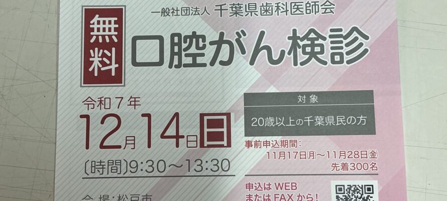 12月16日(日)に、松戸市中央保健福祉センターで「口腔がん検診」が行われます。