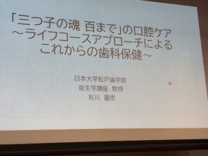 なかでも、いつもお世話になっている日大松戸歯学部 衛生学講座 有川量崇先生のご講演がとても印象的でした。